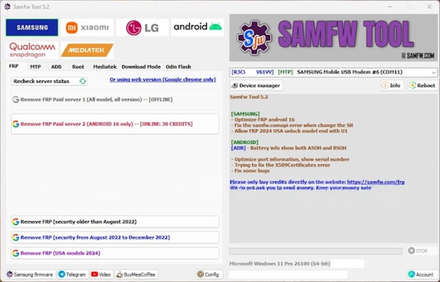 Key Features of SamFw FRP Tool V5.2